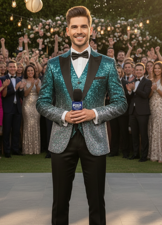 CELEBRITY STAGE STYLE |Sparkling Men’s 3-Piece Sequins Pant Suit in 11 Colours | Custom Size
