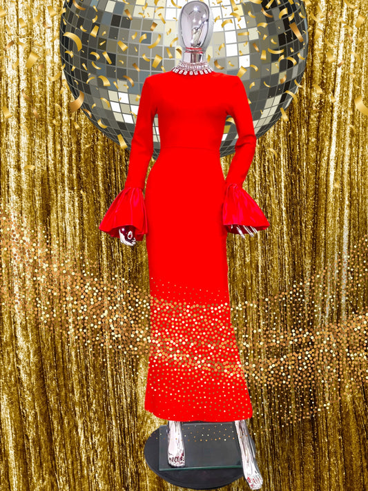 HOT STYLE | Elegant Slim Fit Trumpet Maxi Dress with Crystals Neckline in Black and Red