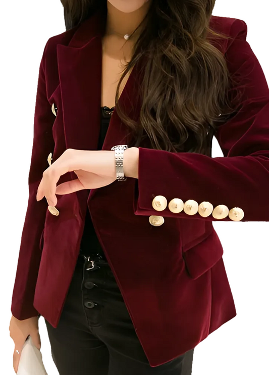 Women's Slim Fit Velvet Double Breasted Blazers in 3 Colours; 2XL Plus Size