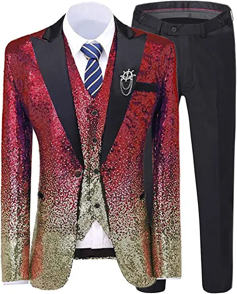 CELEBRITY STAGE STYLE |Sparkling Men’s 3-Piece Sequins Pant Suit in 16 Colours | Custom Size