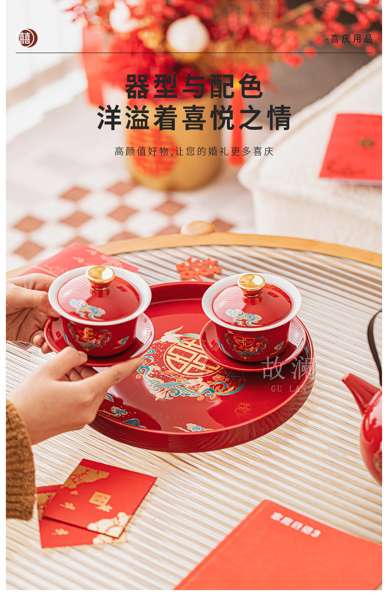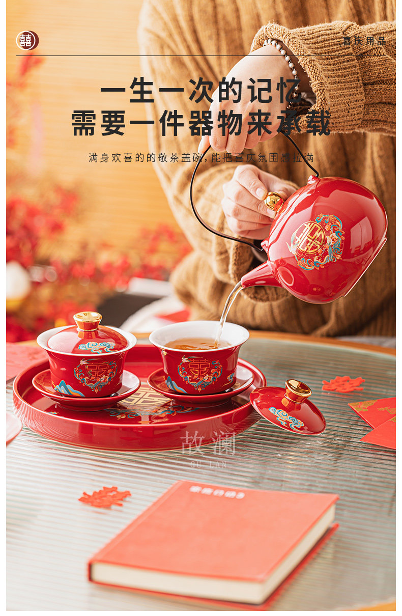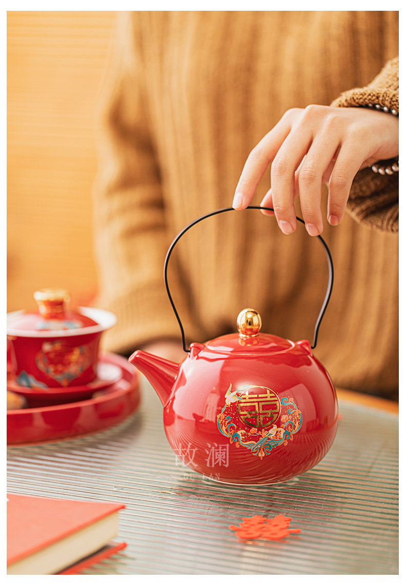 طقم هدايا مكون من 8 قطع من إبريق الشاي والأكواب، مطلي يدويًا، مناسب لحفلات الشاي في حفلات الزفاف الصينية.
