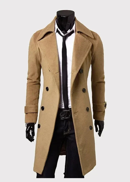 Men’s Double Breasted Wool Blend Trench Coat in 3 Colours; 4XL Plus Size