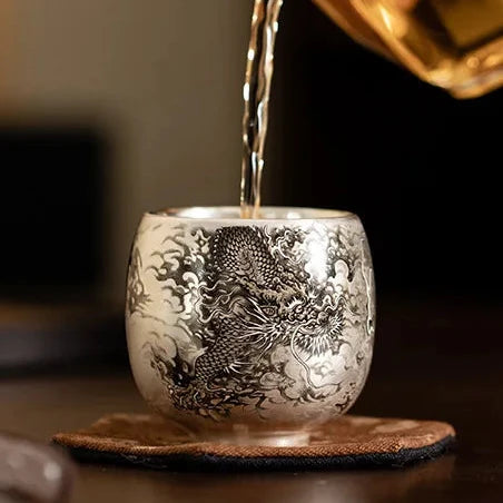 BIRTHDAY GIFTS FOR HIM | Dragon Gilded Sliver Porcelain Tea Cup 120ml