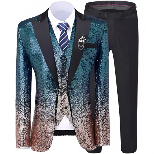 CELEBRITY STAGE STYLE |Sparkling Men’s 3-Piece Sequins Pant Suit in 16 Colours | Custom Size