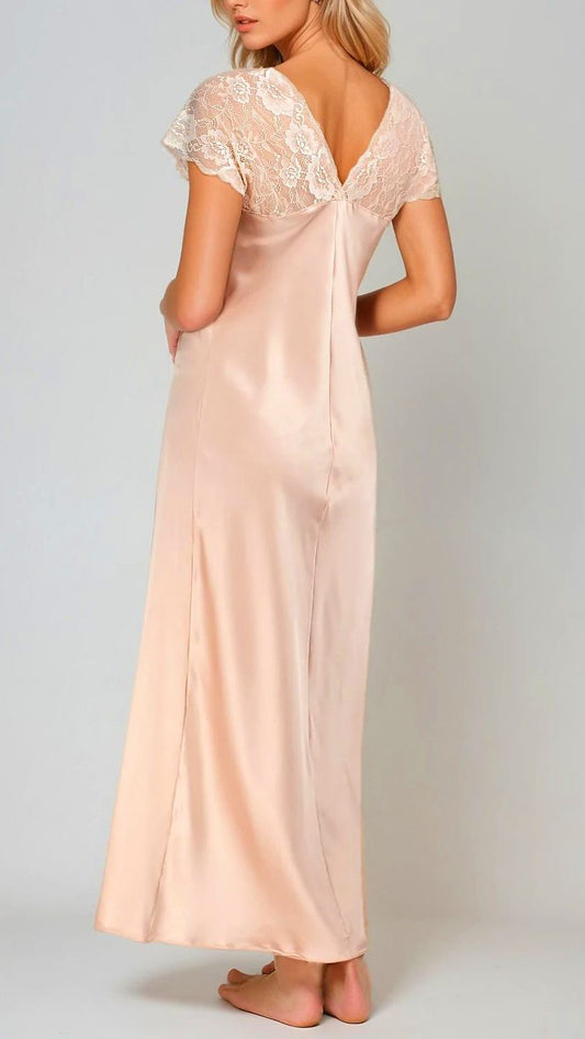 Short Sleeves Lace Trim Night Grown