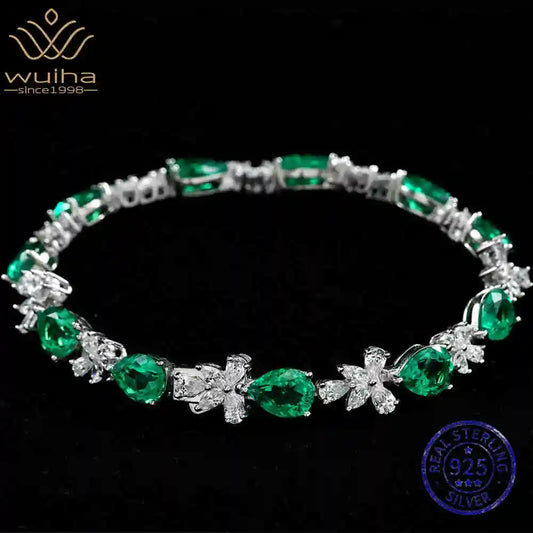 925 Sterling Silver 6x8mm Lab Grown Emerald Amethyst / Ruby High Carbon Diamonds Bracelet Fine Jewellery