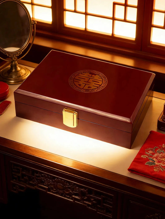 BRIDAL GIFTS |DOUBLE HAPPINESS Retangular Lacquer Wooden Jewellery Boxes Velvet Lining with Anti-Oxidation Metal Closure