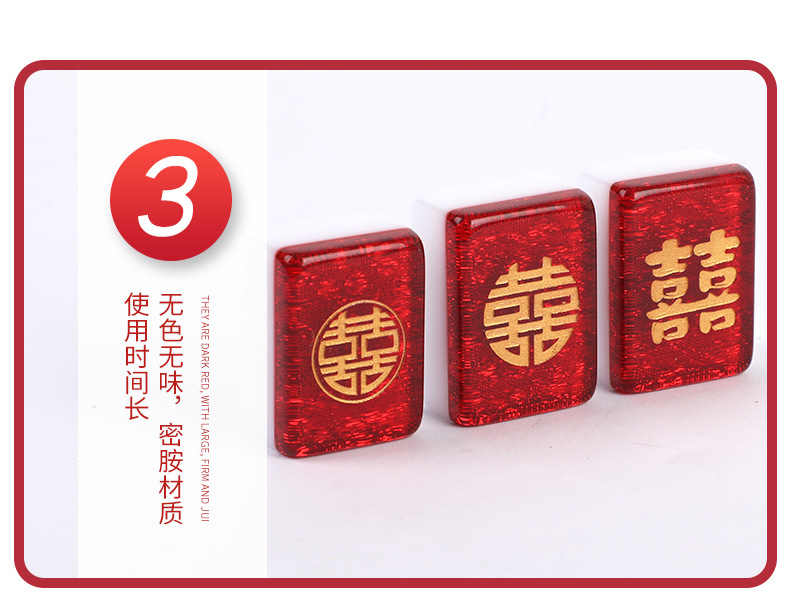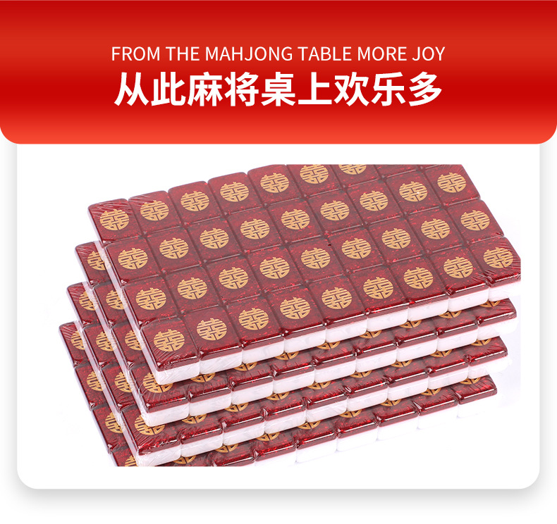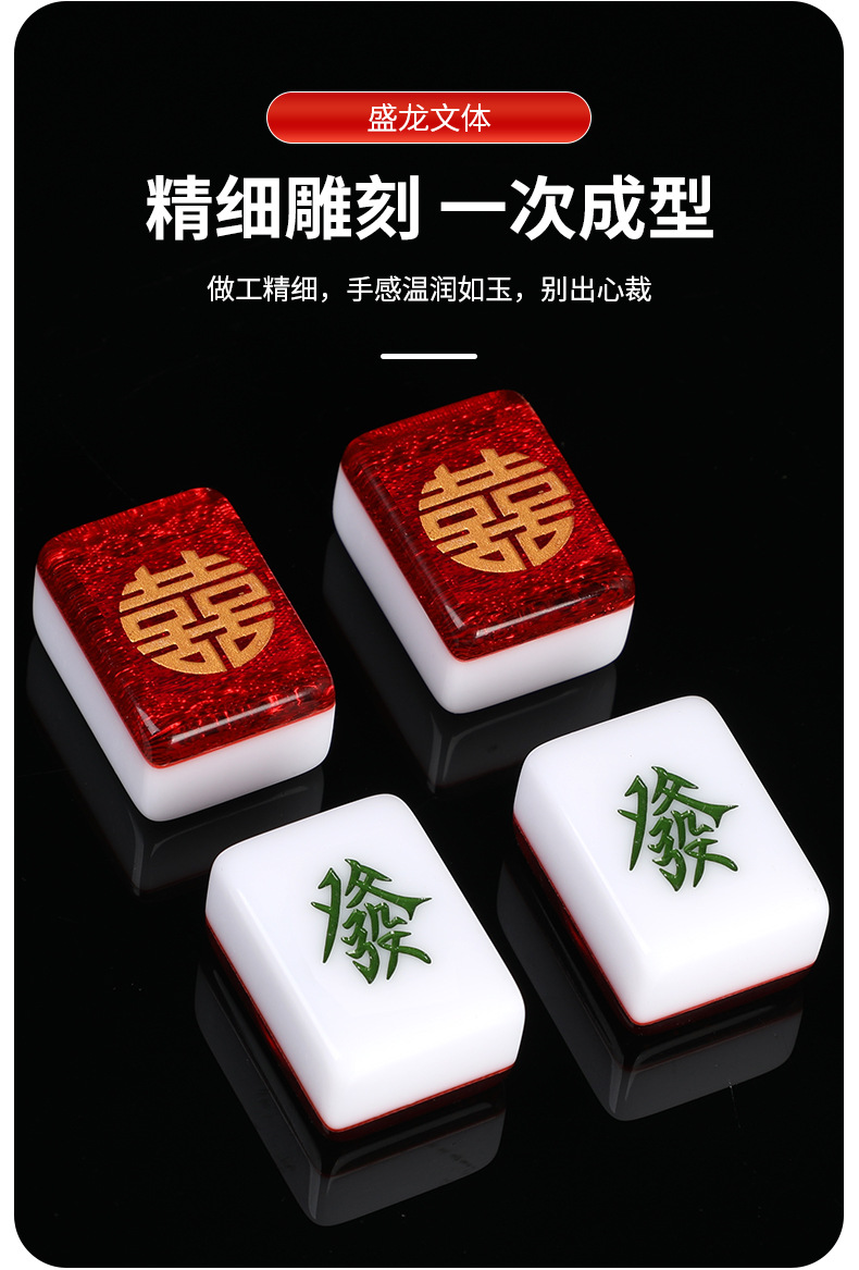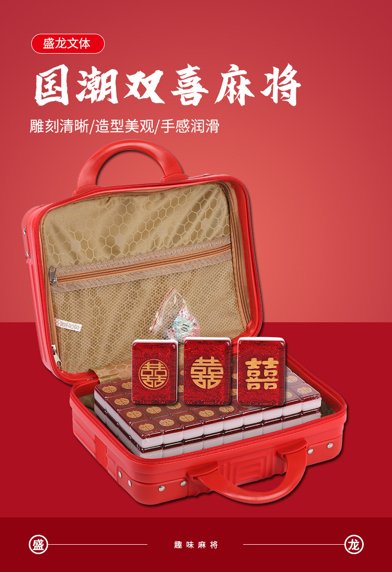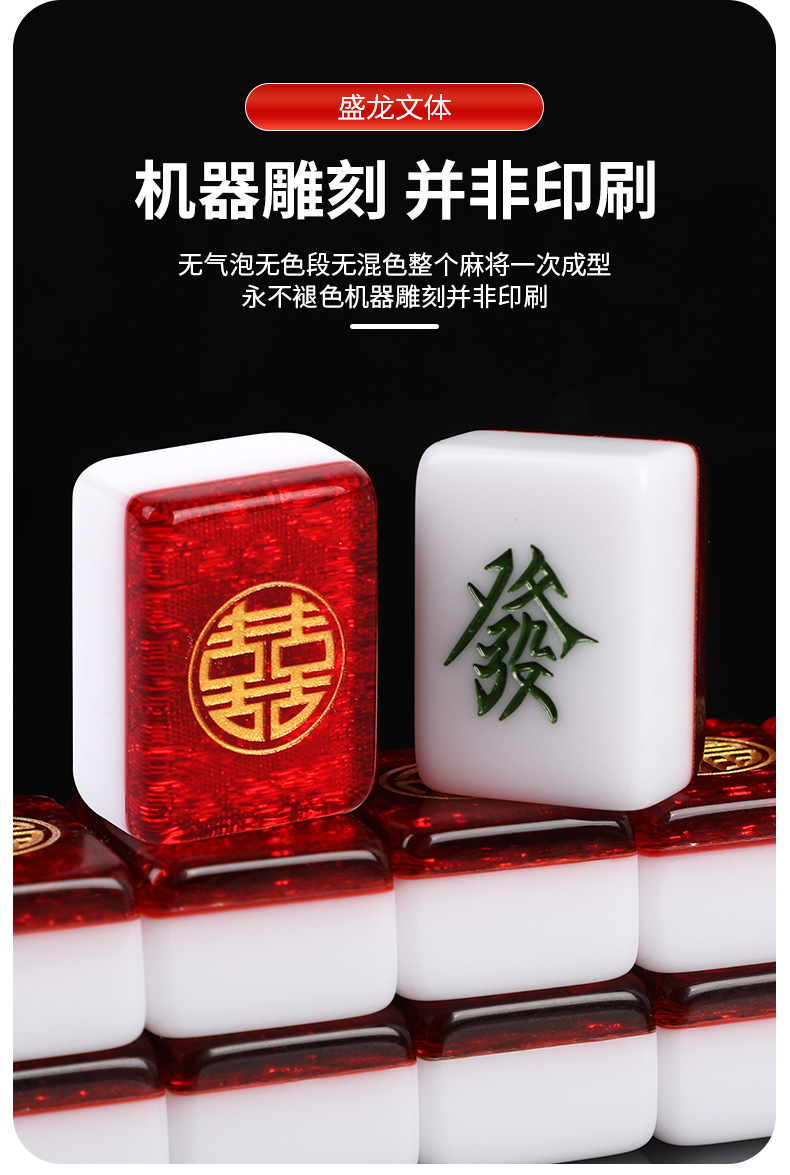 Coffret cadeau de mahjong « Double Bonheur » gravé en résine rouge scintillante (38 mm/40 mm/42 mm/44 mm) dans un étui/sac de transport avec tapis de table en caoutchouc