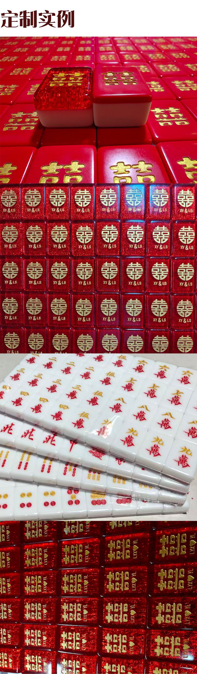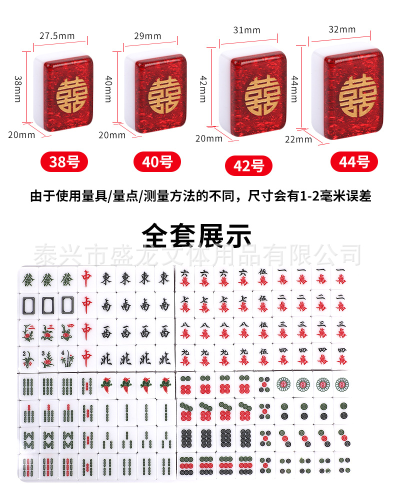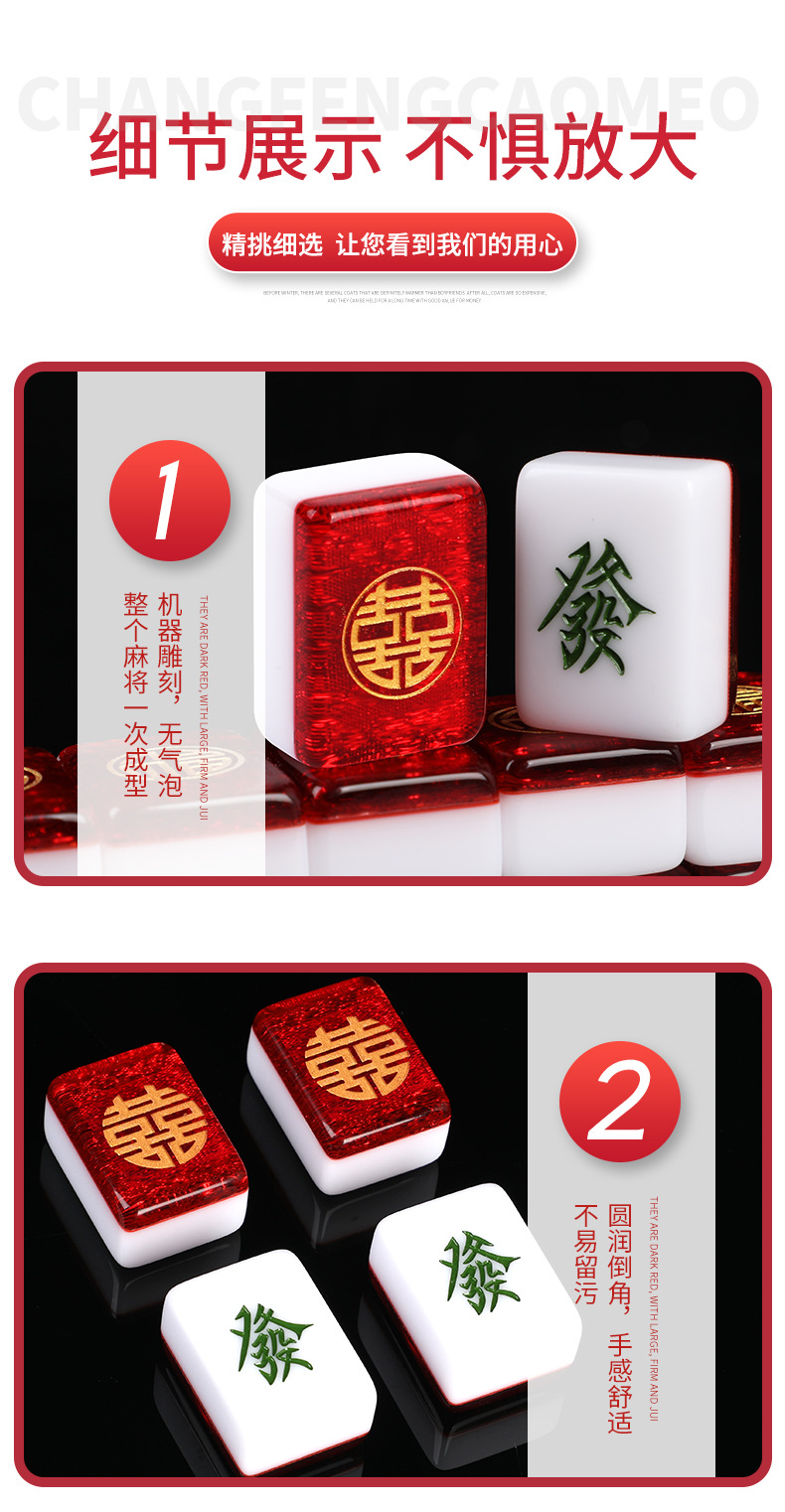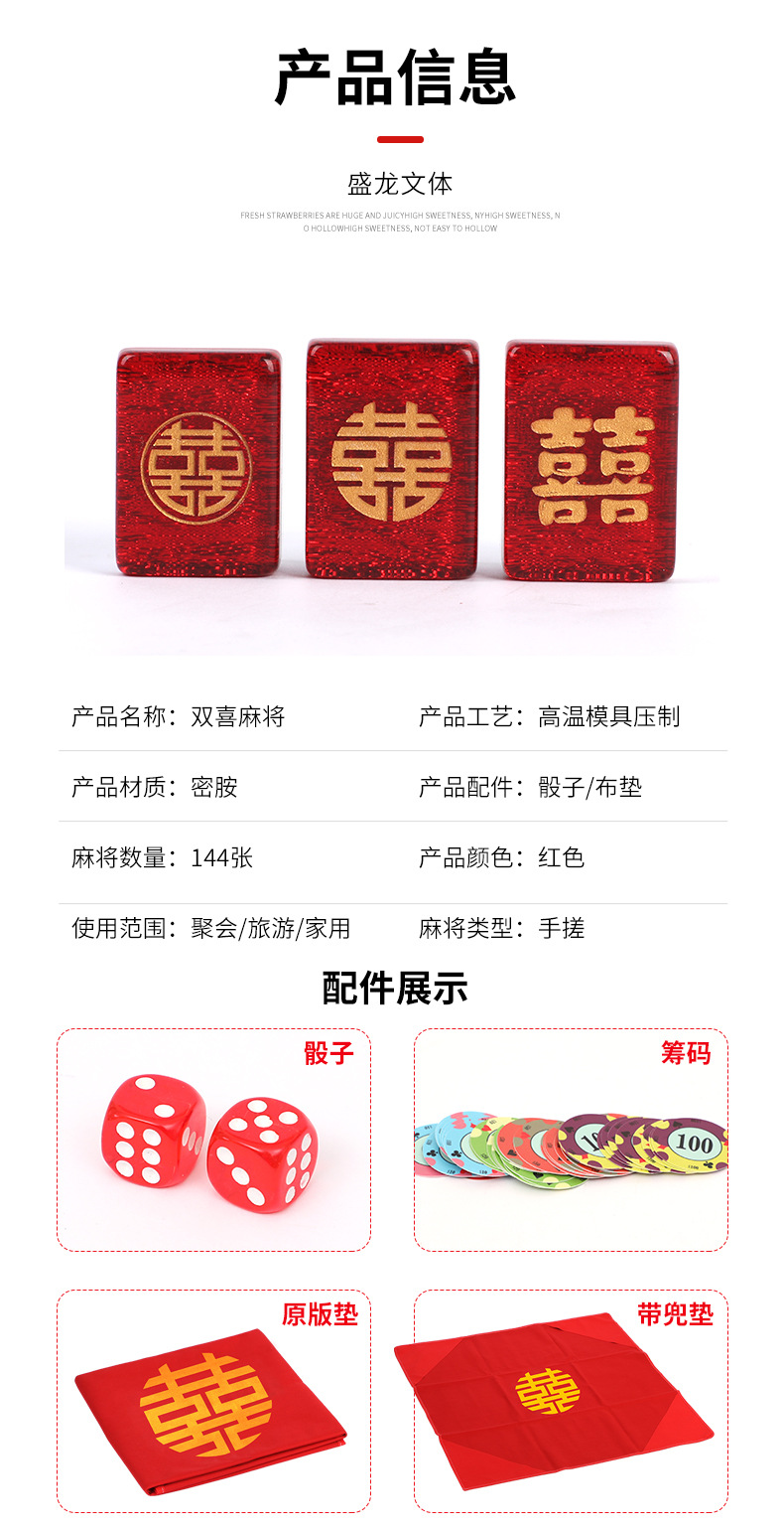 Coffret cadeau de mahjong « Double Bonheur » gravé en résine rouge scintillante (38 mm/40 mm/42 mm/44 mm) dans un étui/sac de transport avec tapis de table en caoutchouc