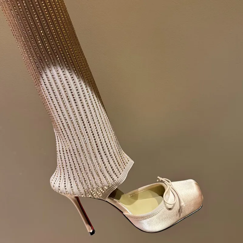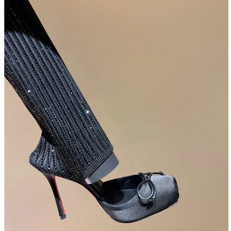 Chaussettes mi-mollet à cristaux scintillants, style ballerine, disponibles en 3 couleurs (collection printemps-été 2026)