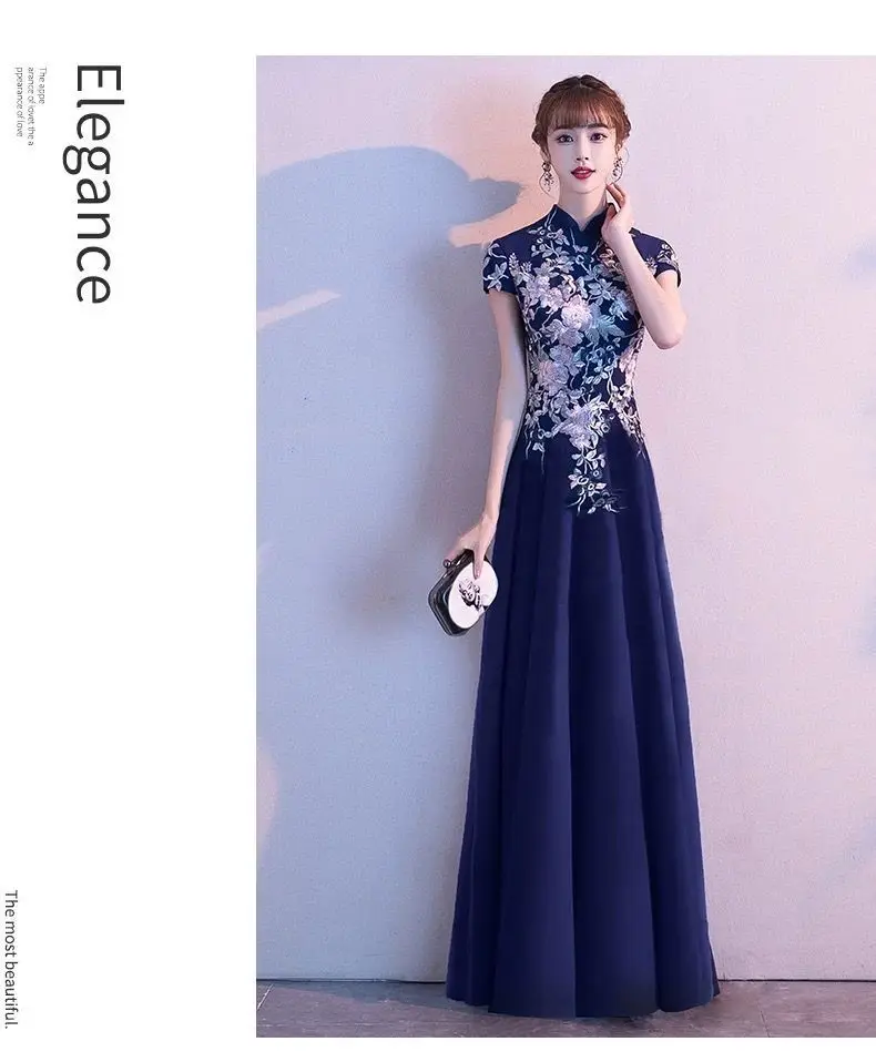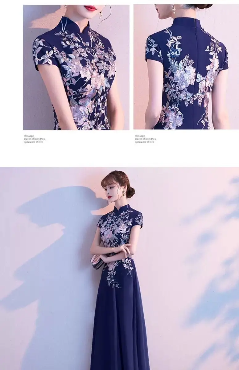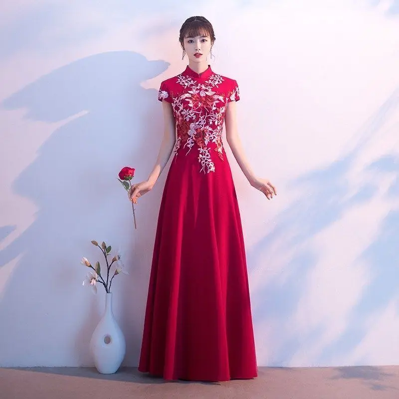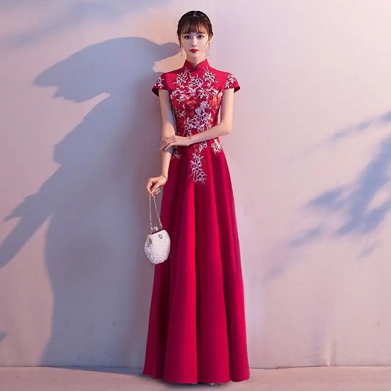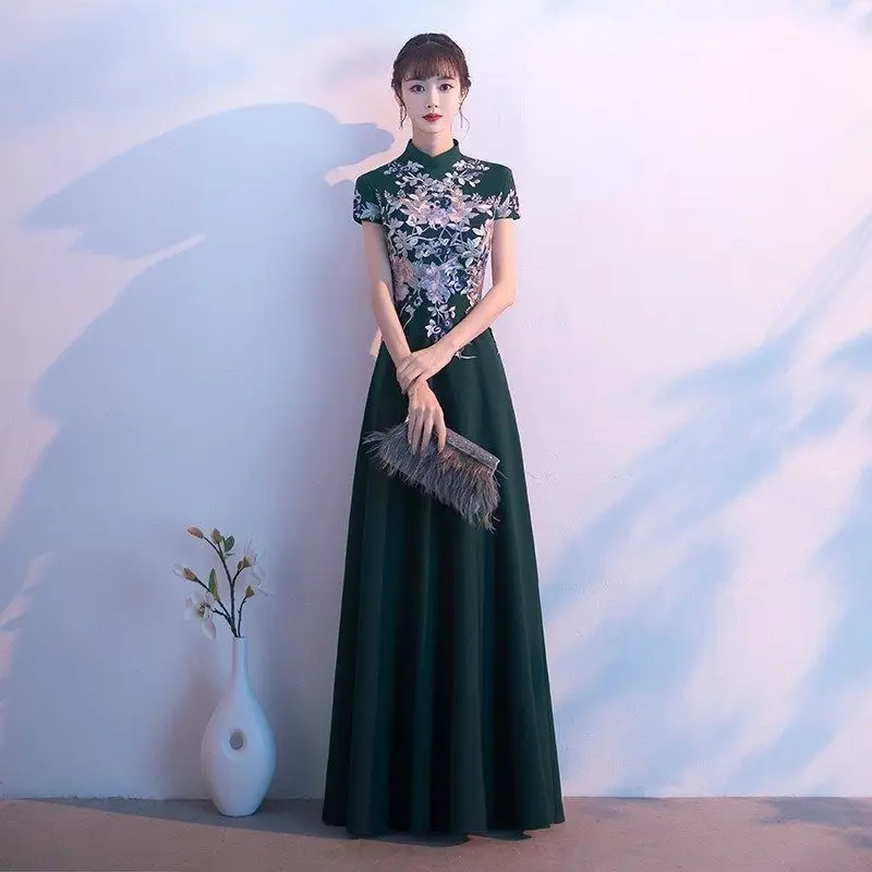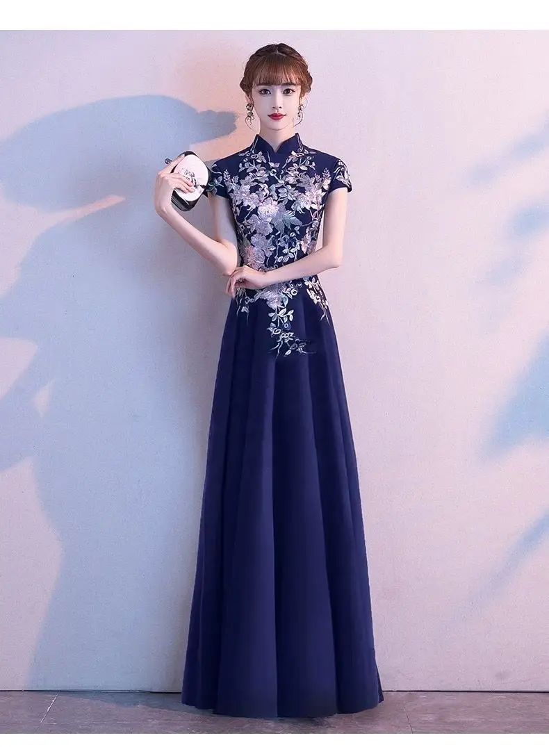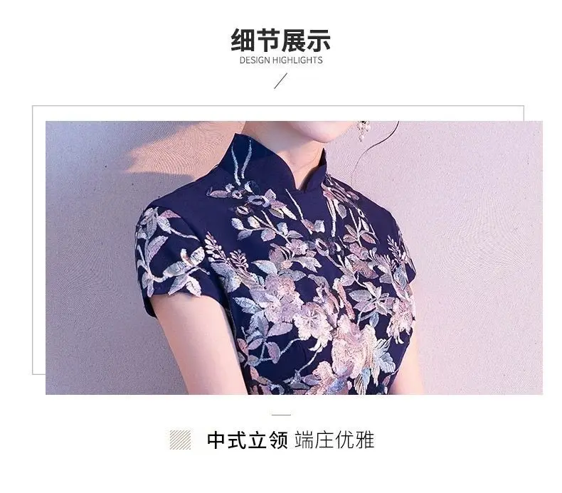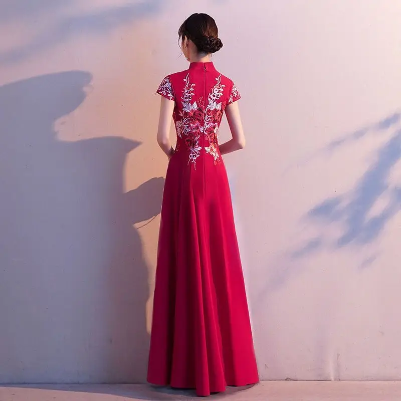 Elegant Embroidered Cap Sleeves Mono Colour A-Line Qipao Dress in 4 Colours; 4XL Plus Size