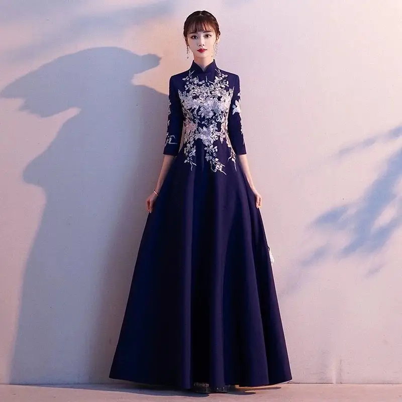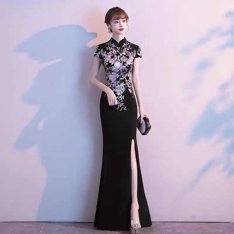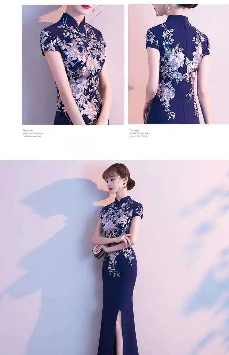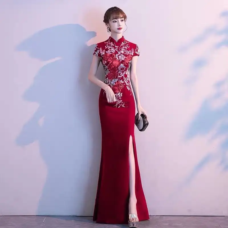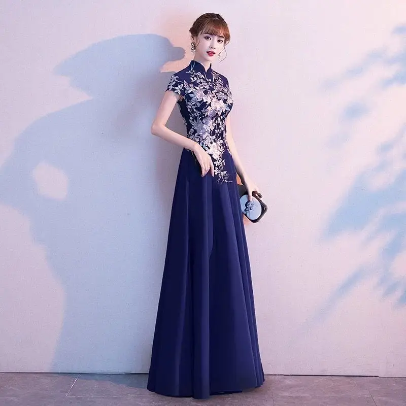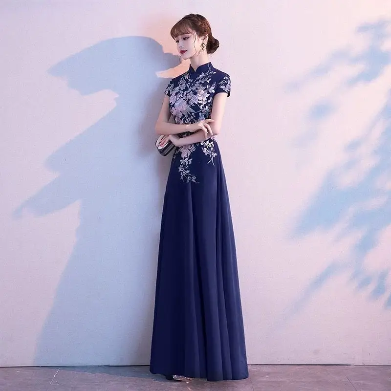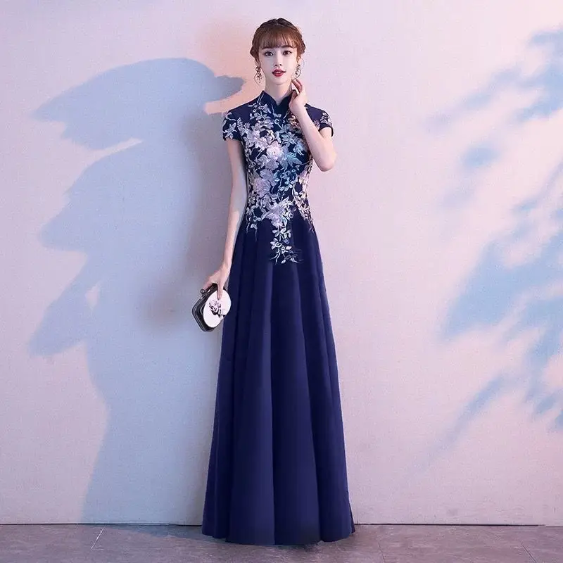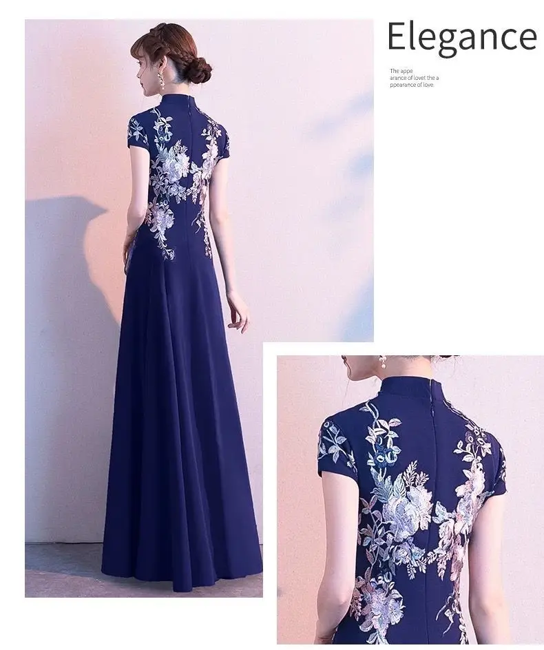 Elegant Embroidered Cap Sleeves Mono Colour A-Line Qipao Dress in 4 Colours; 4XL Plus Size