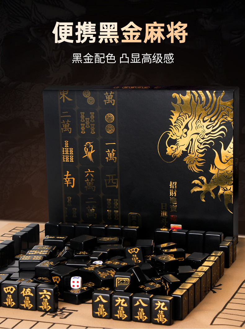PARTY GIFTS | Black Gold Mahjong Tiles Sets For Travel and Home