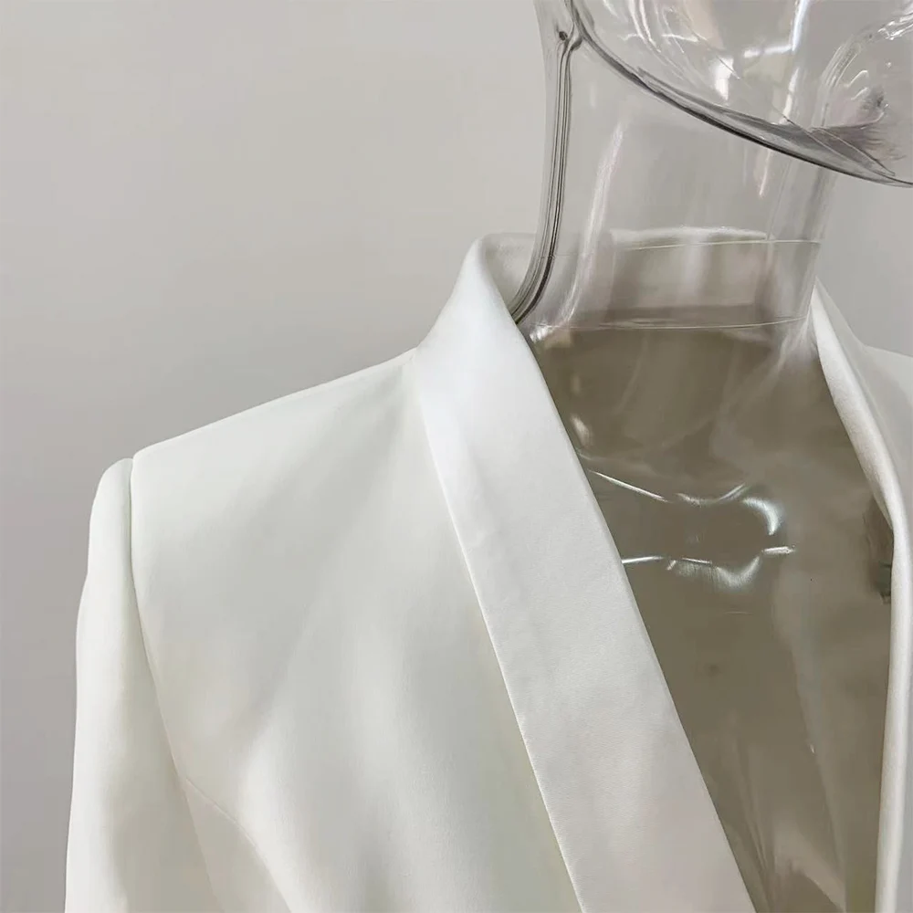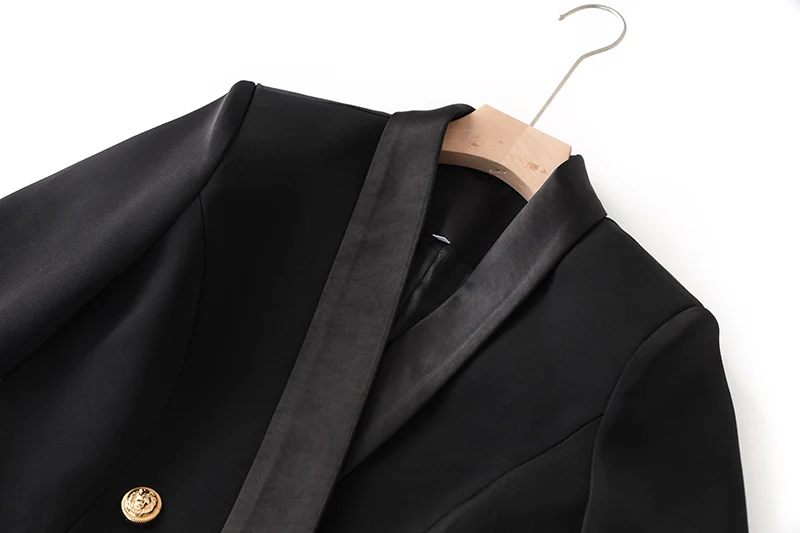 Elegant Satin Shawl Collar Double Breasted Executive Blazer with Slash