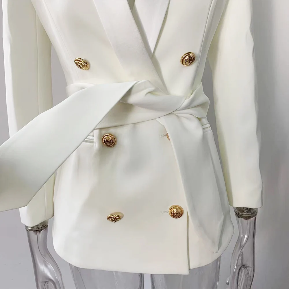 Elevate your wardrobe with the Elegant Shawl Collar Double Breasted Executive Blazer, a masterful creation that marries sophisticated design with luxurious materials. Its double-breasted silhouette and wrinkle-resistant fabric embody an effortless elegance, ensuring you navigate each occasion with poise and refinement, reminiscent of the timeless artistry found in haute couture.