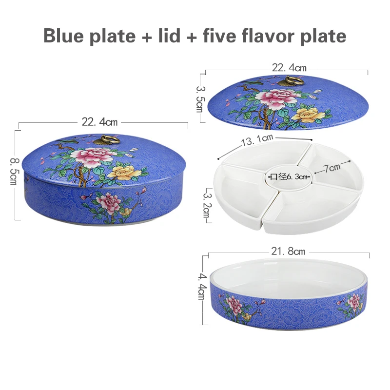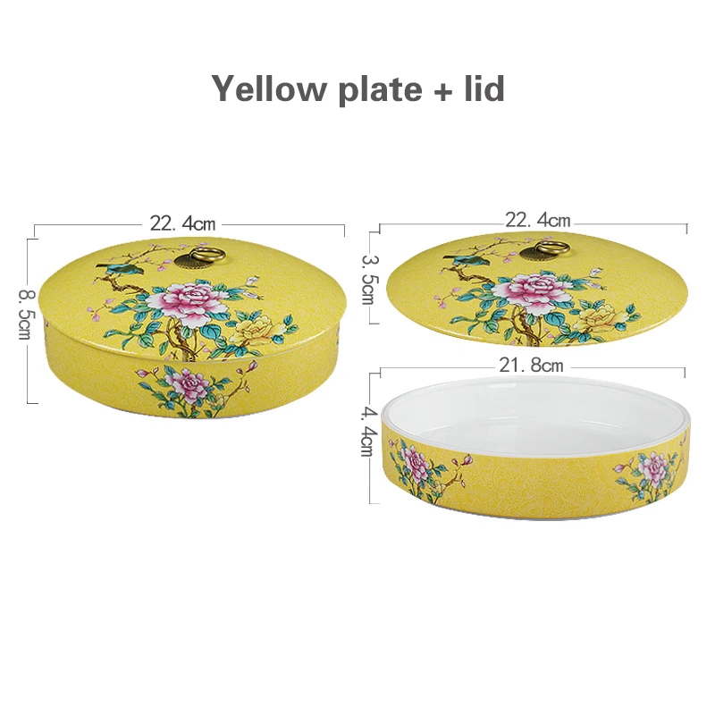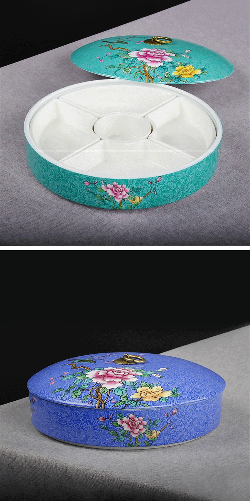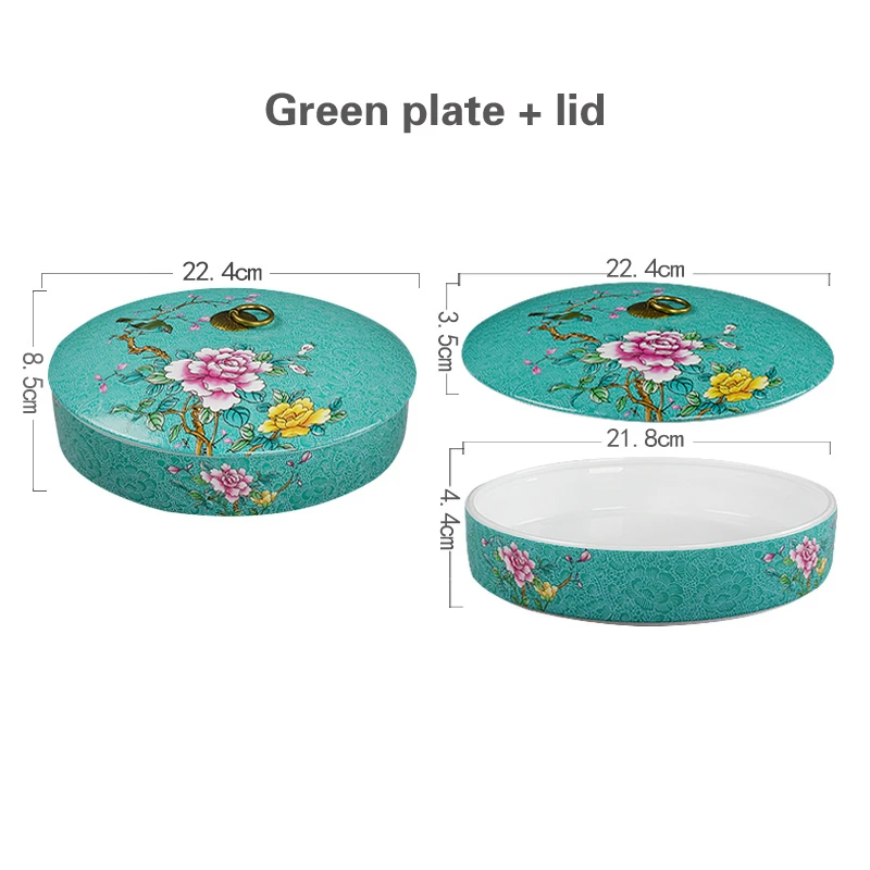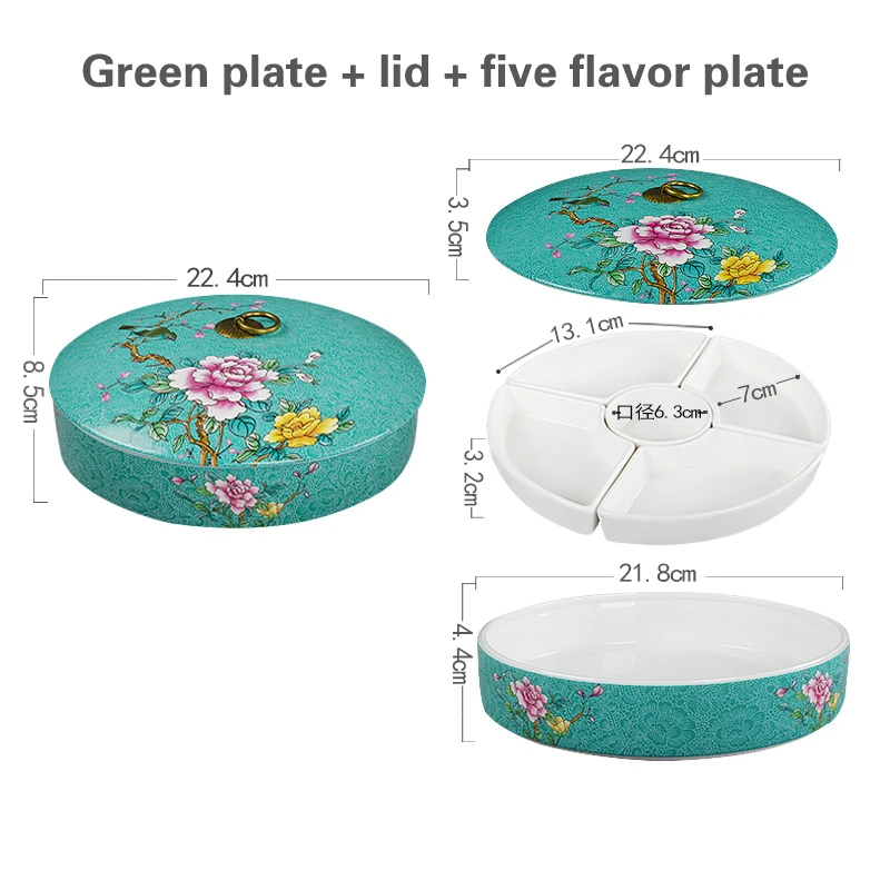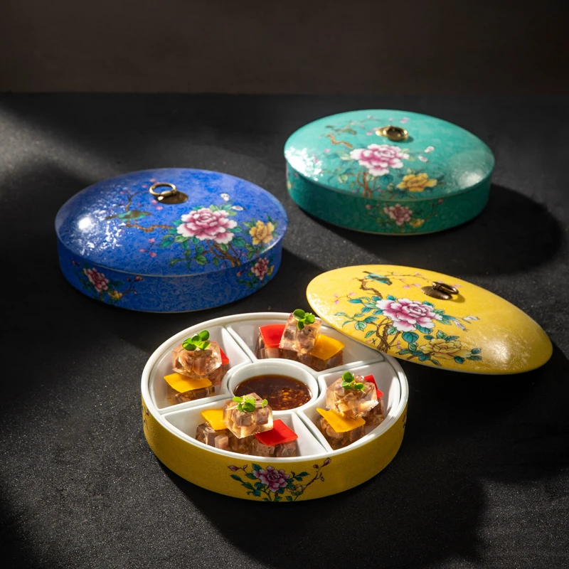 Handcrafted Enamel Colour Dishes / Flat Tea Cake Containers with Dividers and Cover in 3 Colours