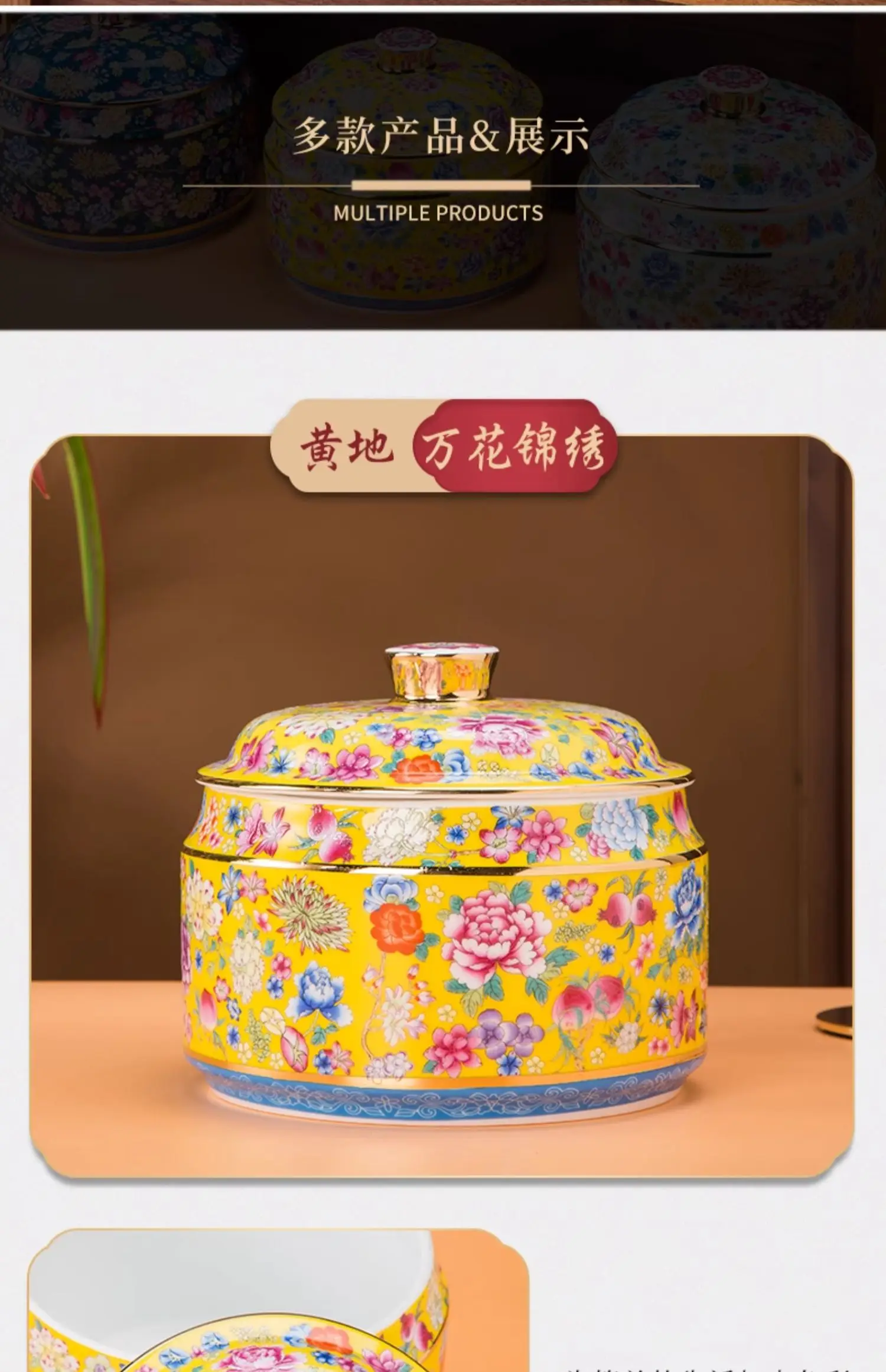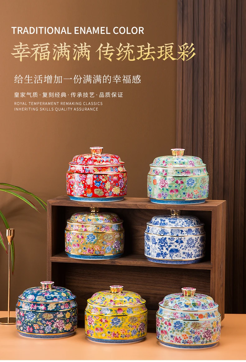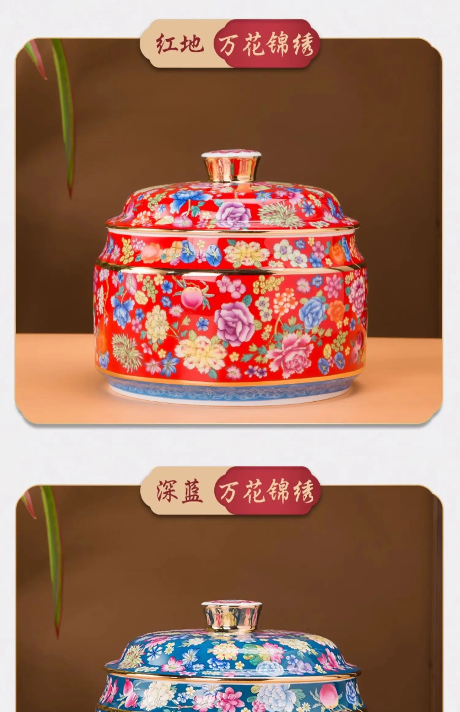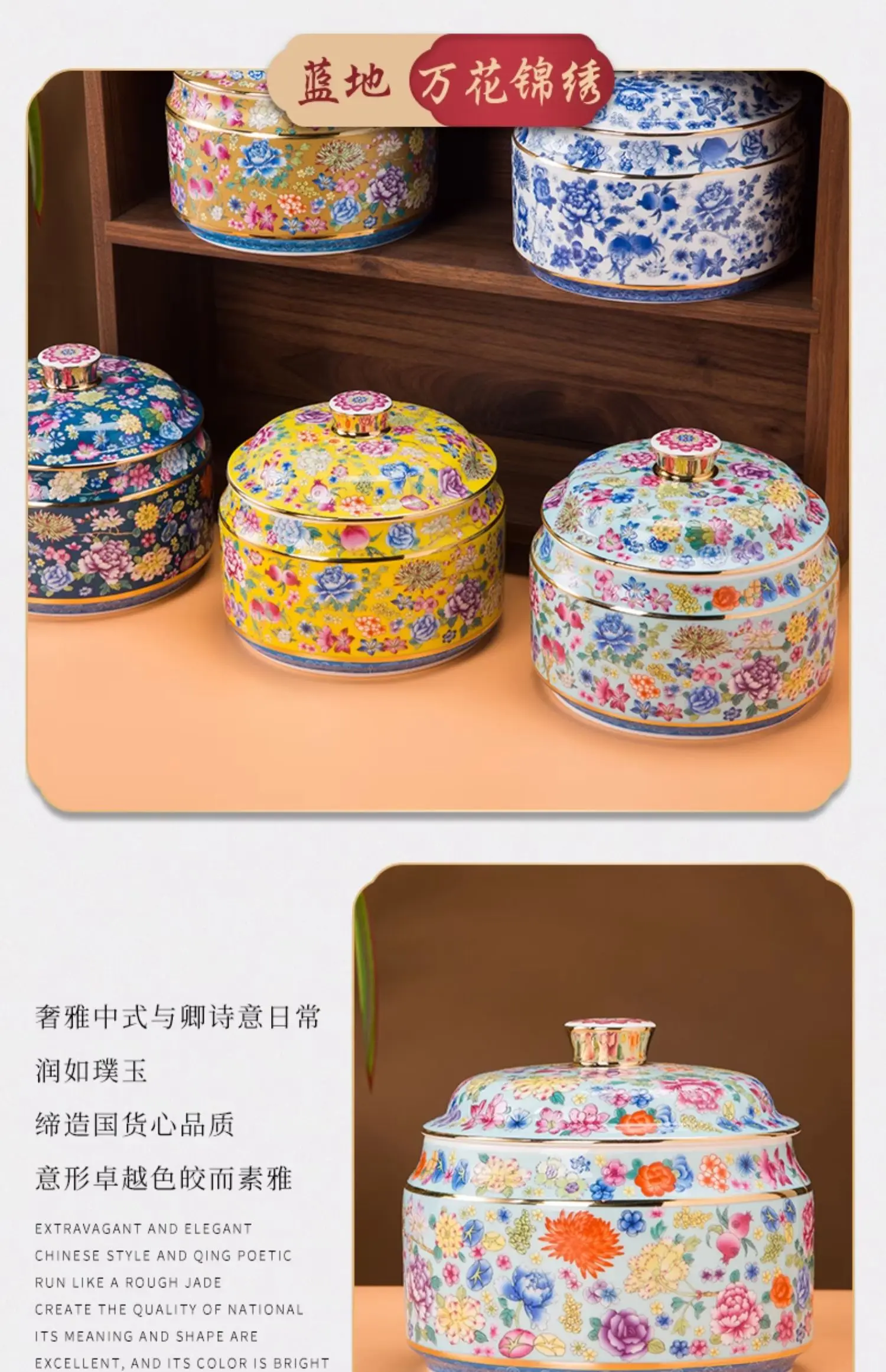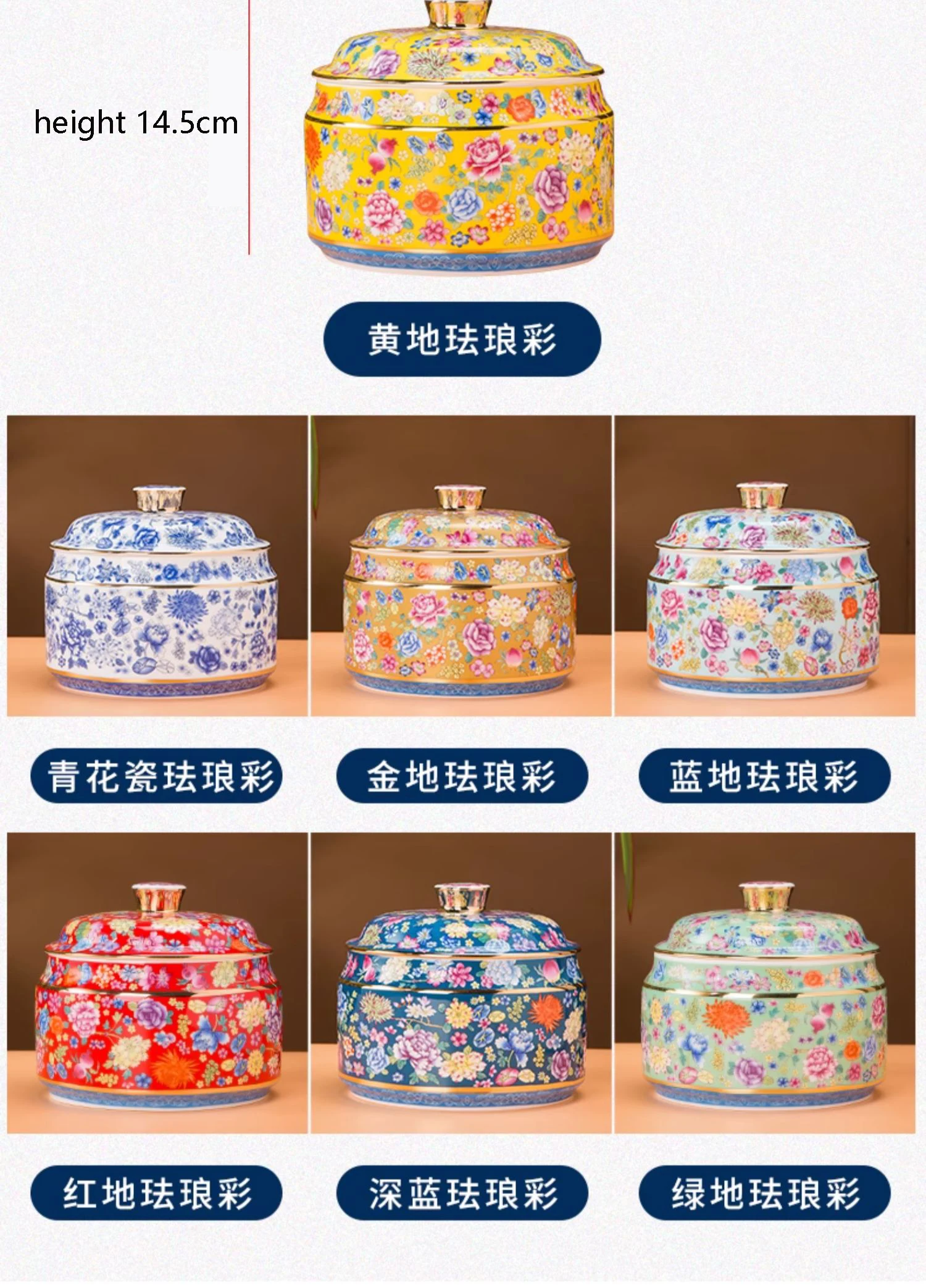 Jingdezhen Ceramic Hand Painted Enamel Floral Storage Jars in 8 Colours