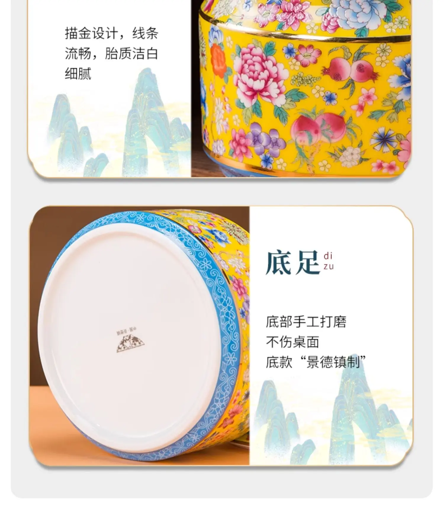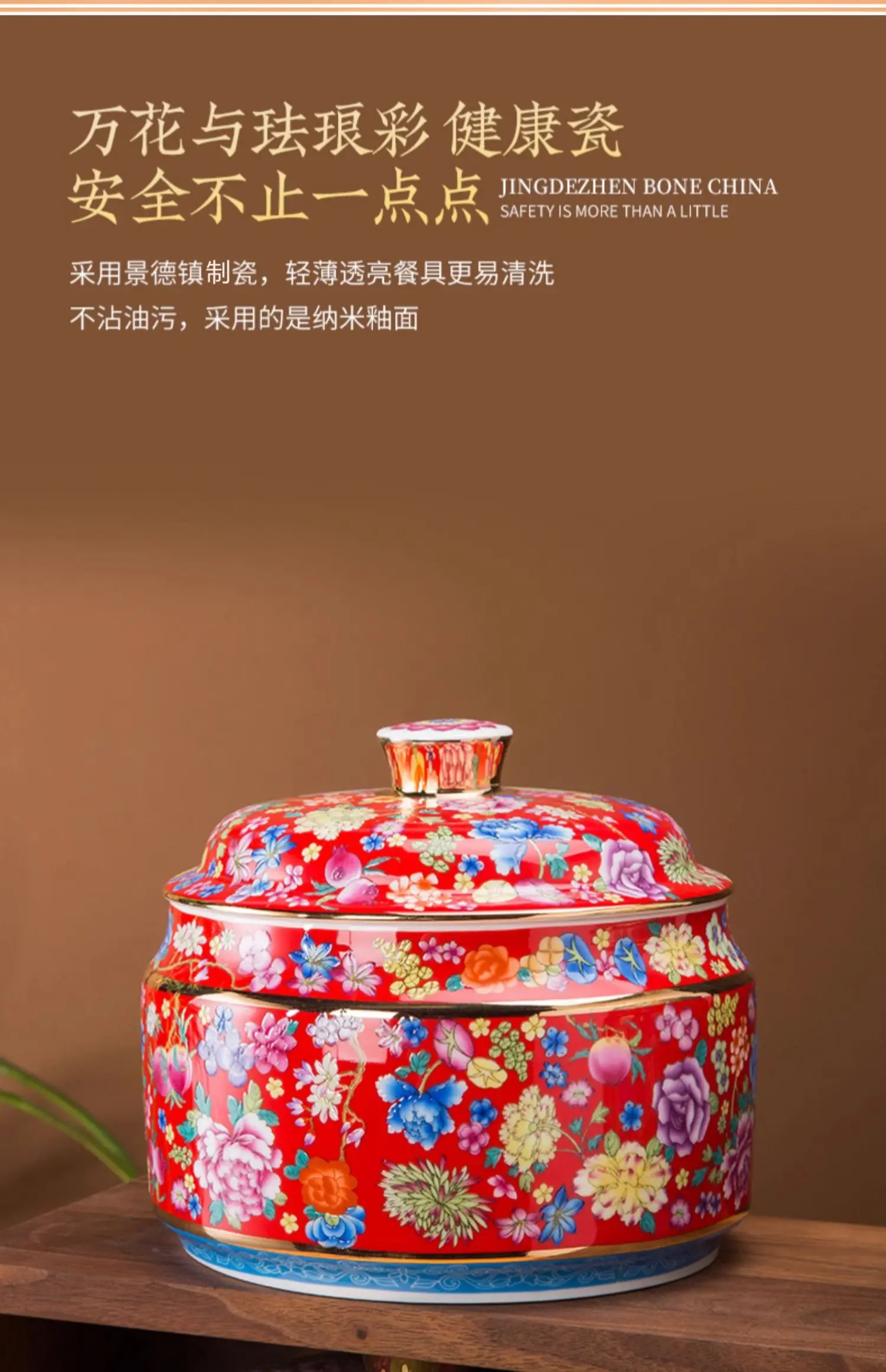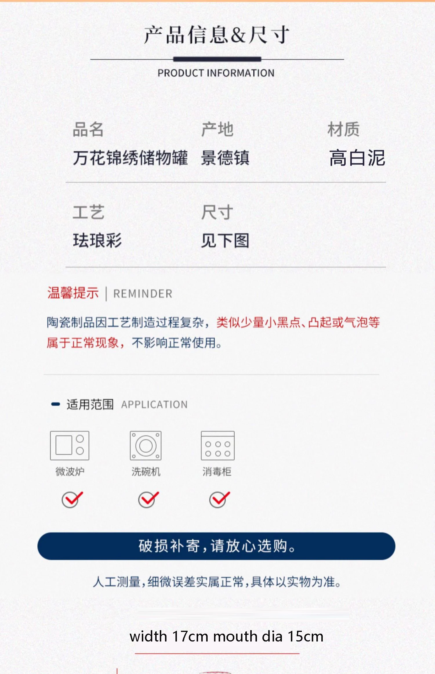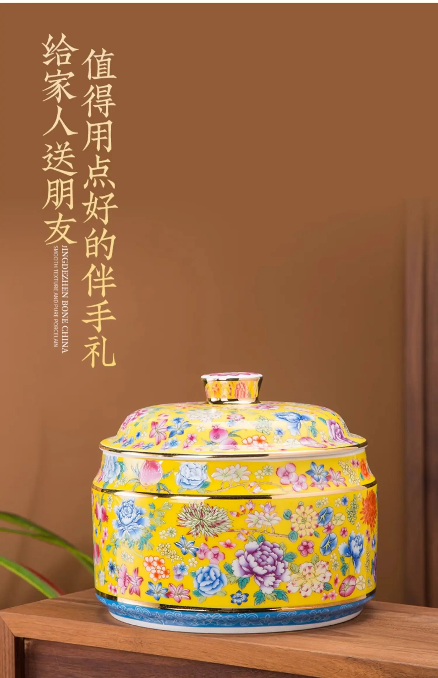 Jingdezhen Ceramic Hand Painted Enamel Floral Storage Jars in 8 Colours