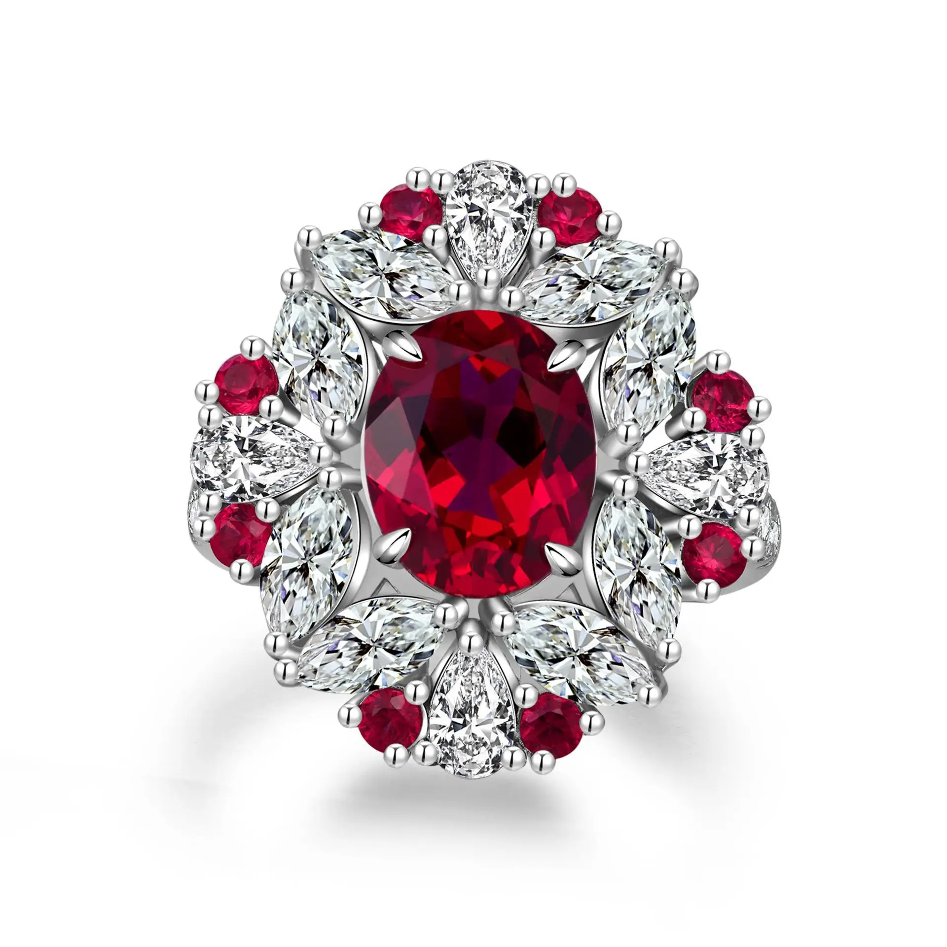 Luxury White Gold Solid Platinum PT950 Uncertified Lab Grown Blue Sapphire / Red Ruby Diamond Rings