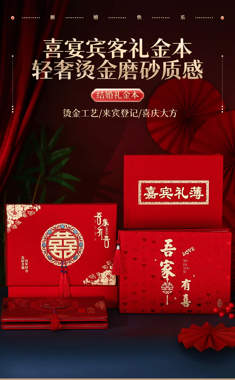 Deluxe Dragon Phoenix Double Happiness Wedding Guest Books and Signature Ledgers in 9 Cover Designs