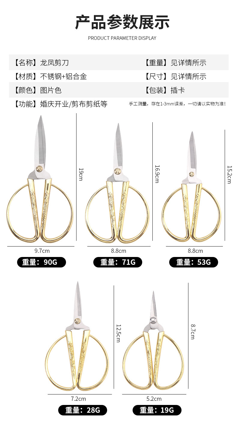 CHINESE WEDDING CEREMONY | Retro Dragon And Phoenix Alloy Scissors Multipurpose - Tailoring, Ribbon Cutting, Wedding in 5 Sizes