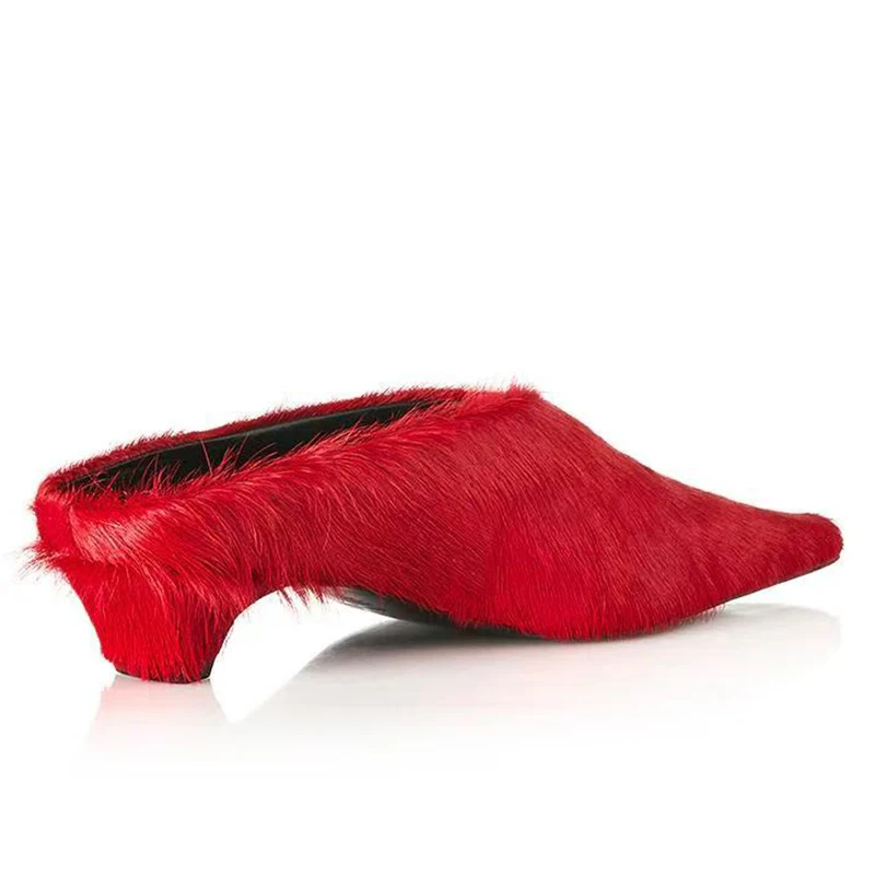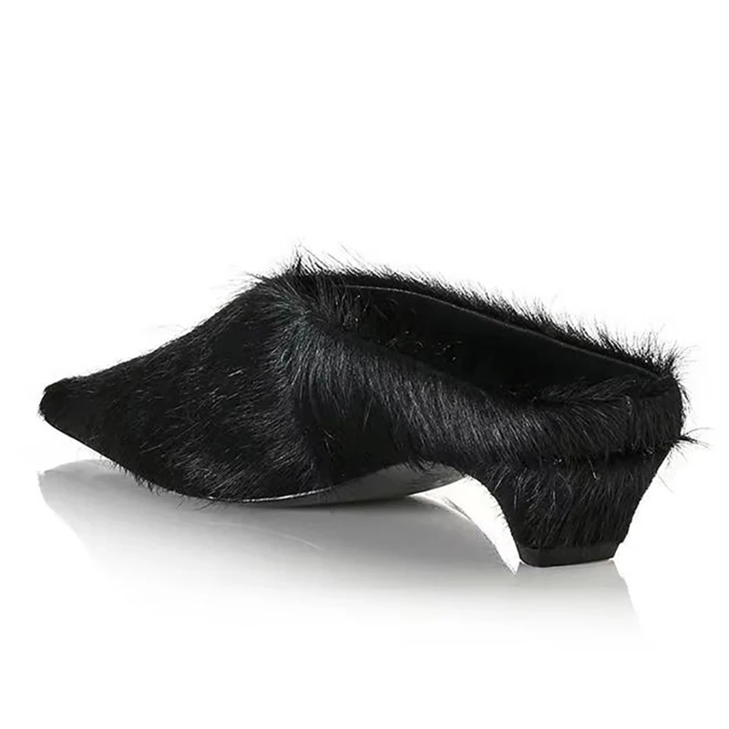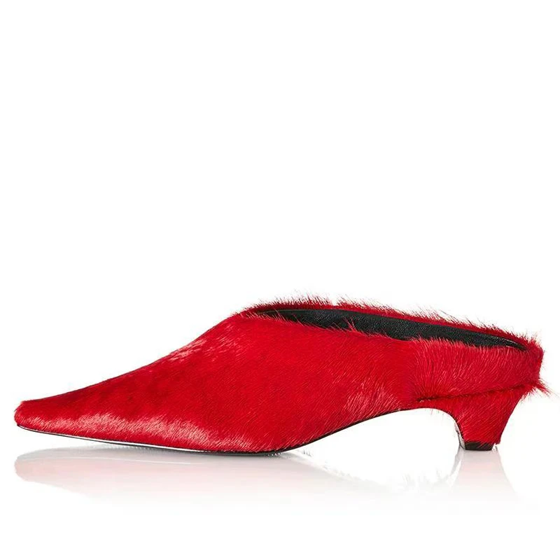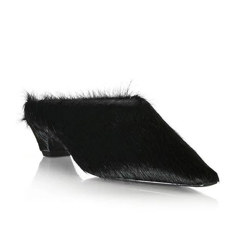 2026SS Horsehair Pointed Toe Slip-On Low-Heel Sandals in 5 Colours