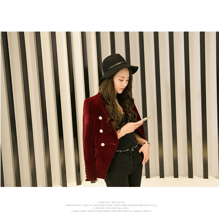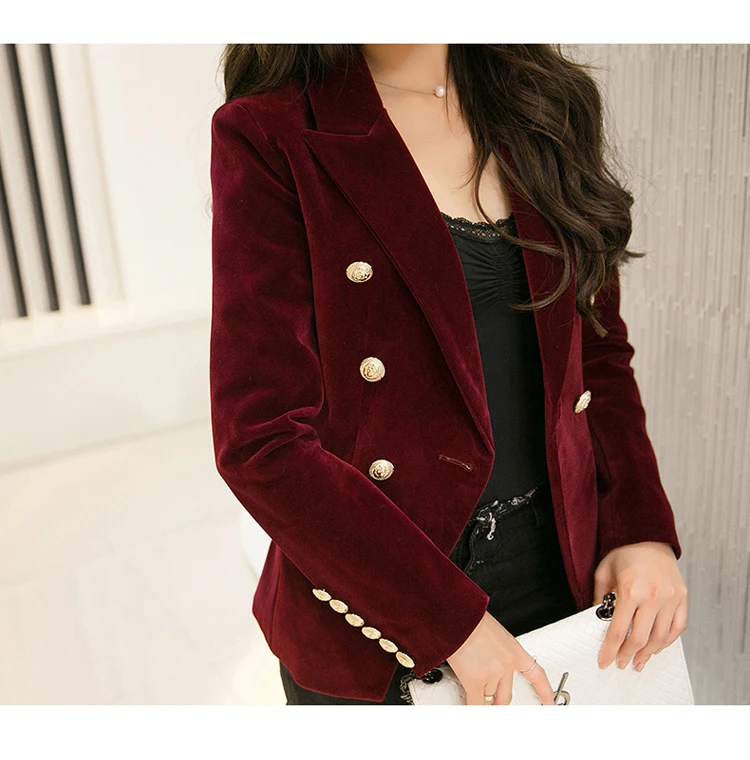 Women's Slim Fit Velvet Double Breasted Blazers in 3 Colours; 2XL Plus Size