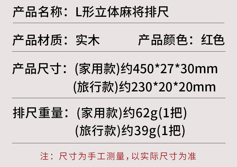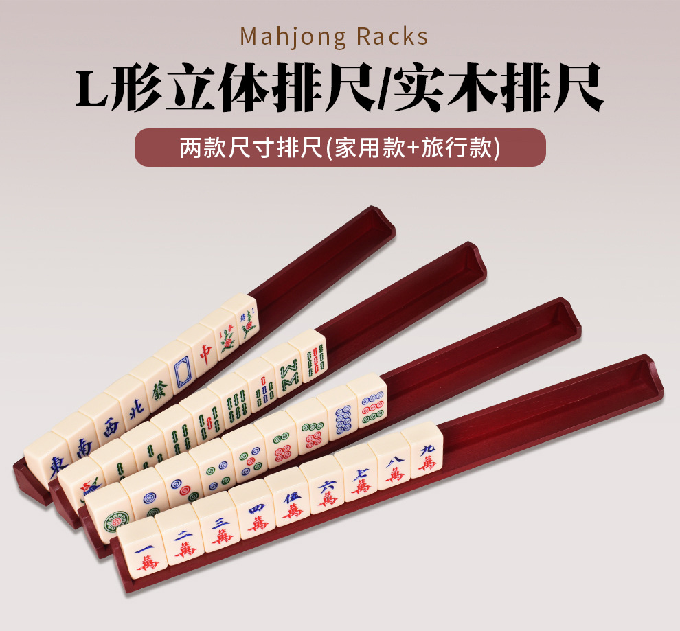 Solid Wood Mahjong L-Shaped Tile 45cm (Length) Rulers for Mini 20mm and Medium 30mm Tiles